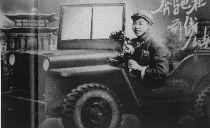 1960年春节,雷锋特意去照相馆拍摄了“奔驰在前线”照片。摄影/佚名