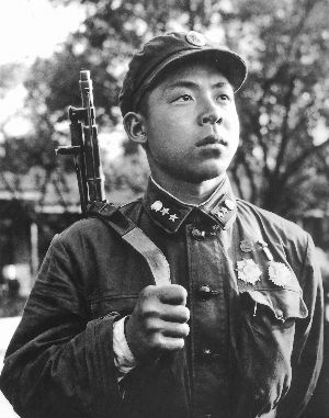 雷锋入伍后,部队宣传干事为他拍摄的第一幅持枪照片。摄影/张峻