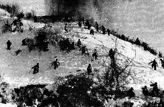 志愿军第27军围攻柳潭里美军陆战一师(志愿军随军记者拍摄)。