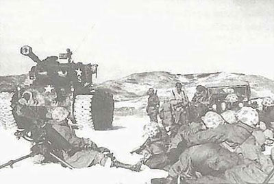 长津湖战役中美陆战一师士兵和他们的M24坦克。