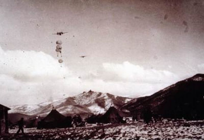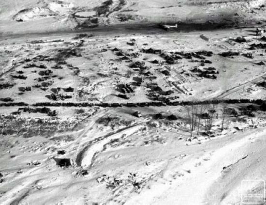 而另一方面,在下碣隅里,高度现代化的美国陆战队工兵用三天时间就拓宽了一条可以通行坦克的道路。仅仅十来天时间,一座可以起降C-47运输机的临时机场就在下碣隅里这个四面环山的小谷地里建成了,陆续建成的还有供给基地、野战医院。随即,美国空军就给史密斯运来了大量急需的弹药、食品、药品、防寒服装、油料。运输数量如此之多,以至于美军最后逃离此地时,还开动推土机坦克破坏了以千吨计的各种物资。与此同时,与中国本土仅隔一条封冻的鸭绿江的志愿军却连保证基本生存所需的物资都难以供给。