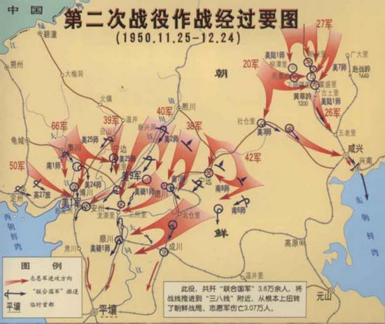 此时,联合国军在朝鲜总兵力高达55.3万人,其中地面部队42.3万人,位于朝鲜北部第一线约35万人,而志愿军首批入朝部队仅步兵6个军18个师,炮兵3个师又1个团,共约23万人,人数上处于劣势,装备与火力上就更为悬殊,迫切需要二线部队迅速跟进,因此9兵团入朝参战的时间表骤然提前。