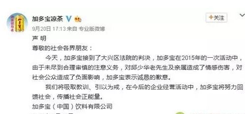 孙杰(即新浪微博“@作业本”)、加多宝(中国)饮料有限公司的道歉声明。