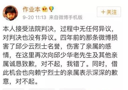 9月20日,北京市大兴区人民法院对邱少云烈士胞弟邱少华起诉孙杰(即新浪微博“@作业本”)、加多宝(中国)饮料有限公司的人格权纠纷案做了一审宣判,用司法方式捍卫了中华民族英雄,揭露和抨击少数人抹黑民族英雄、伤害中华民精神和民族感情的恶劣行径。笔者得悉此讯,实感大快!
