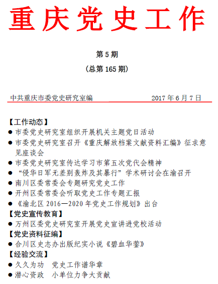 重庆党史网 >党史资讯 >《重庆党史工作》