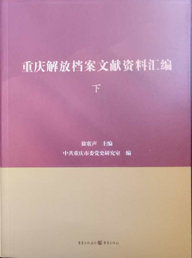 ??? 为纪念建军90周年,重庆市委党史研究室联合全市党史工作部门,在充分吸收近30年有关重庆解放档案文献资料成果基础上,编撰出版了《重庆解放档案文献资料汇编》一书。全书约100万字,主要内容涉及1949年中国人民解放军进军西南、解放重庆的重要战略决策、重大战略进攻、战役战斗等政治军事斗争档案、报刊文献、图片等资料;当事人口述资料、回忆文章;国民党及国民政府相关档案、报刊文献资料;1949年川东临(特)委、各级地方党组织为配合中国人民解放军开展武装斗争,以及统战、策反、护厂、护校等各种斗争工作的相关档案、报刊文献资料、口述资料、回忆文章等,是一部全面反映重庆解放历史的参考史料著作。】