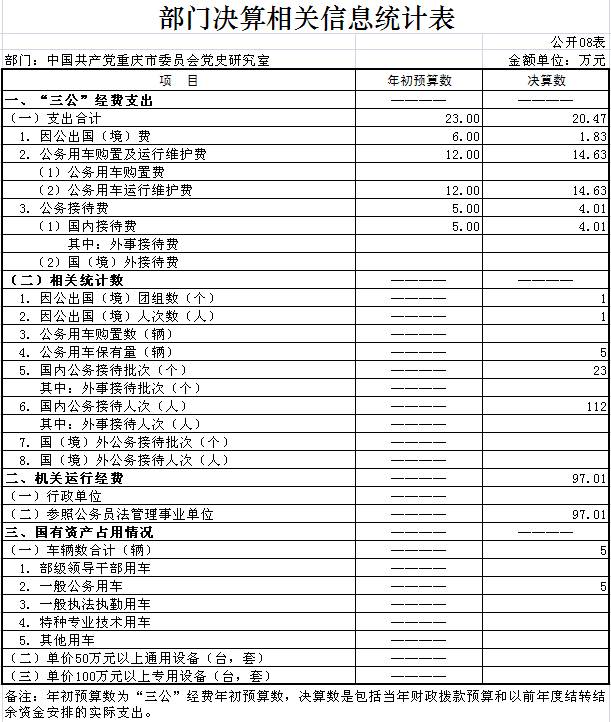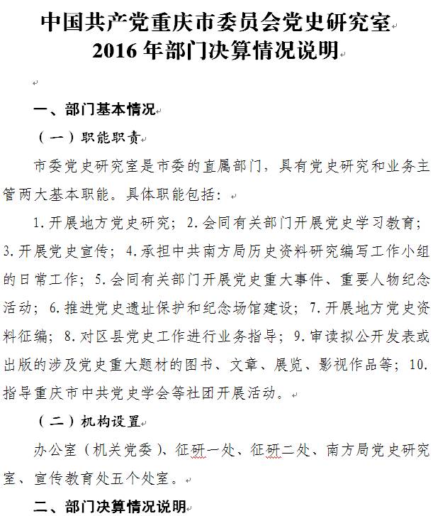 中国共产党重庆市委员会党史研究室2016年部门决算