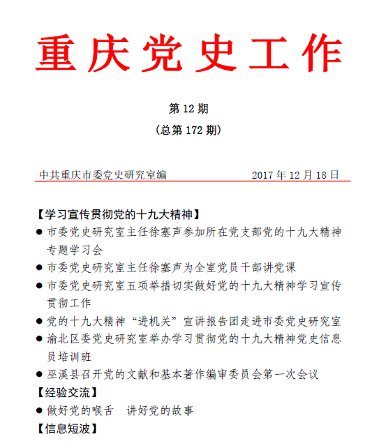 重庆党史网 >党史资讯 >《重庆党史工作》
