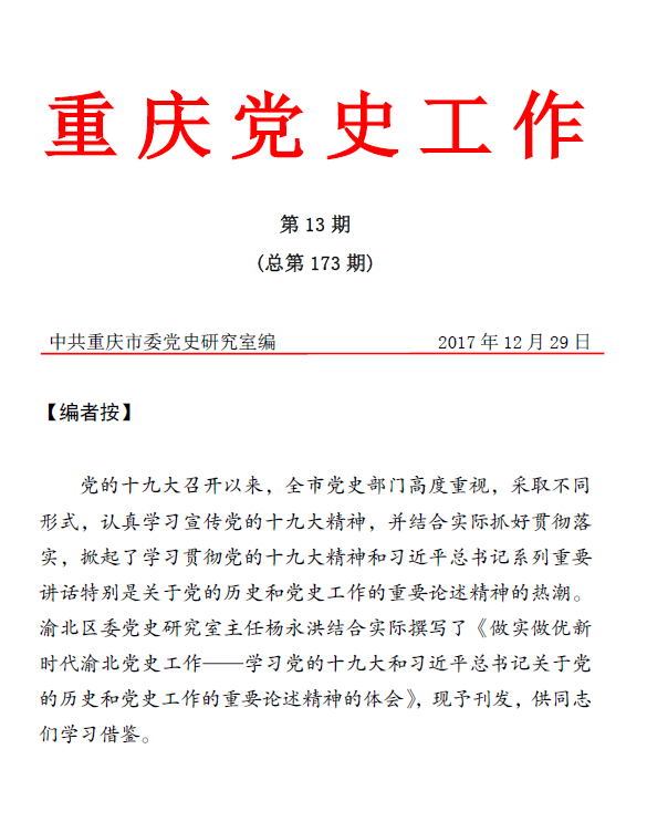 重庆党史网 >党史资讯 >《重庆党史工作》