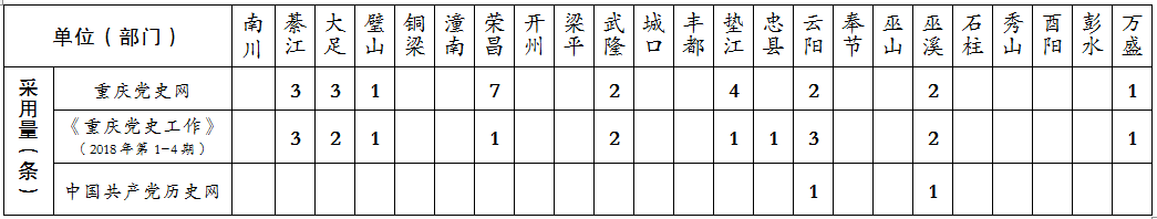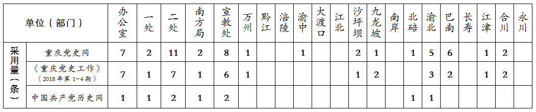 2018年1-3月全市党史工作信息采用情况统计表