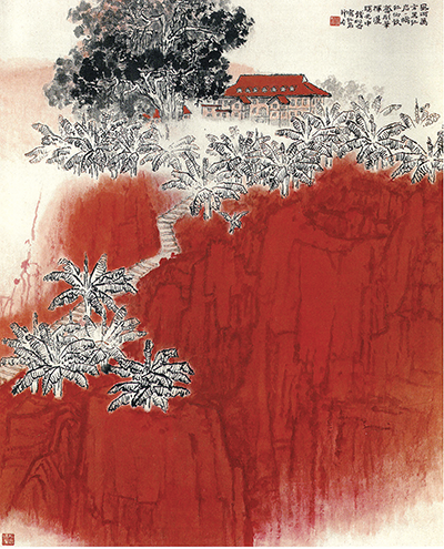 中国画《红岩》钱松喦 作