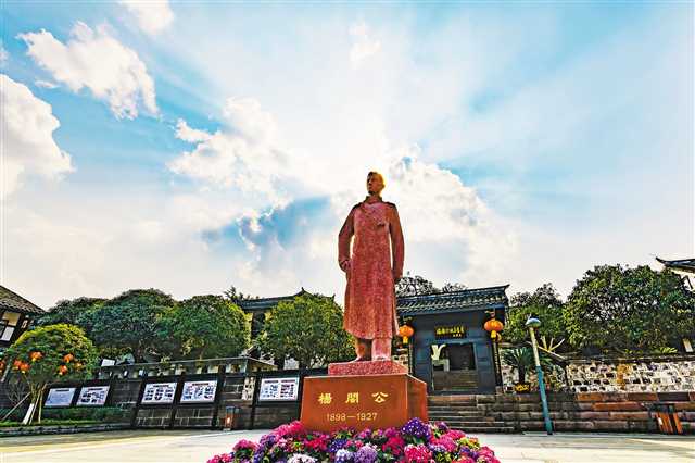 杨闇公同志旧居前的杨闇公雕像。(杨尚昆故里管理处供图)