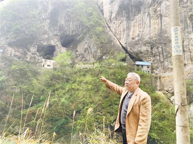 向发军向记者介绍川东游击纵队队员经过时攀爬过的绝壁。记者 左黎韵 摄视觉重庆