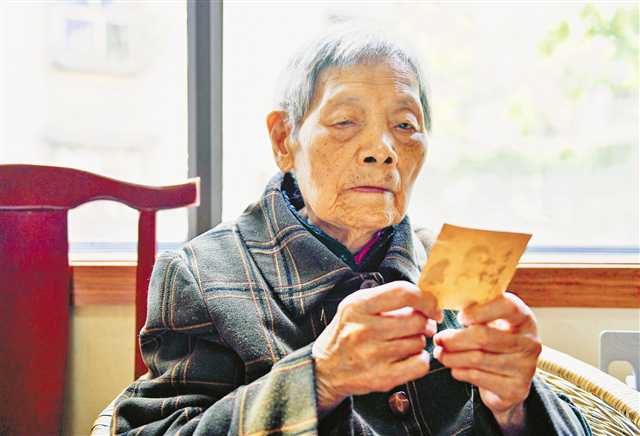 九龙坡区老年公寓5楼,百岁老人李肇庄缓缓将被褥挪至一旁,小心翼翼地从一个文件袋里拿出珍藏多年的几样物品,平整地铺开在床板上——