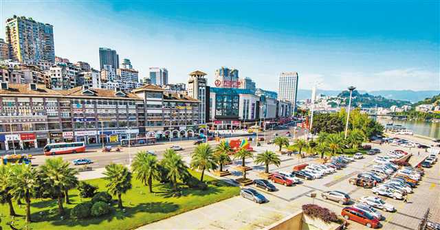 随着三峡大坝175米蓄水,一座座老城消逝水下,一座座现代化新城拔地而起。图为万州区北滨商圈欣欣向荣。(摄于2019年10月30日)特约摄影 冉孟军/视觉重庆