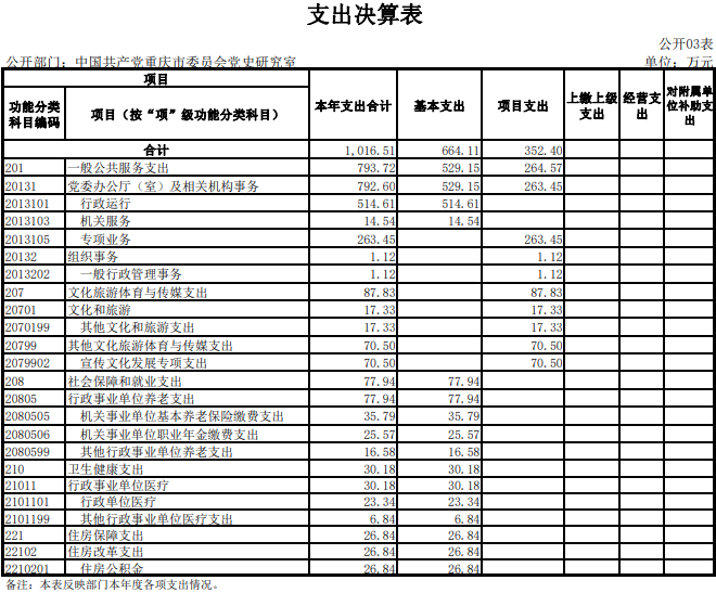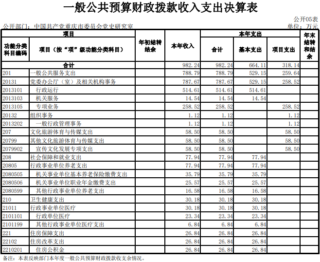 中国共产党重庆市委员会党史研究室2020年度决算公开