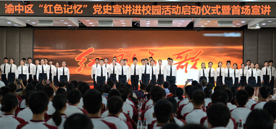 9月7日,由中共渝中区委宣传部、渝中区委党史研究室、渝中区教委、渝中区文化旅游委主办的“ 渝中区‘ 红色记忆’党史宣讲进校园活动启动仪式暨首场宣讲”在重庆二十九中解放碑校区举行。重庆市委党史研究室副主任徐光煦出席启动仪式并作首场宣讲。渝中区有关部门负责人及区属各中、小学分管领导和重庆二十九中部分师生共400余人参加。